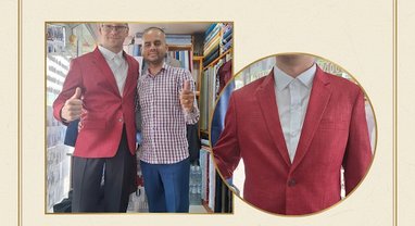 Nothing commands attention like a perfectly tailored jacket in a bold color. Our customer is looking sharp and confident in this custom red creation…